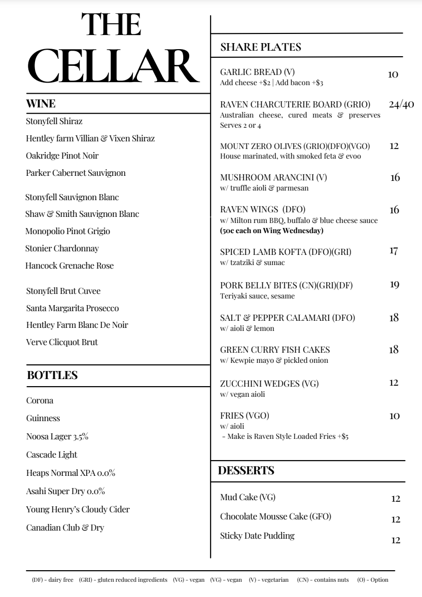 The Cellar Menu